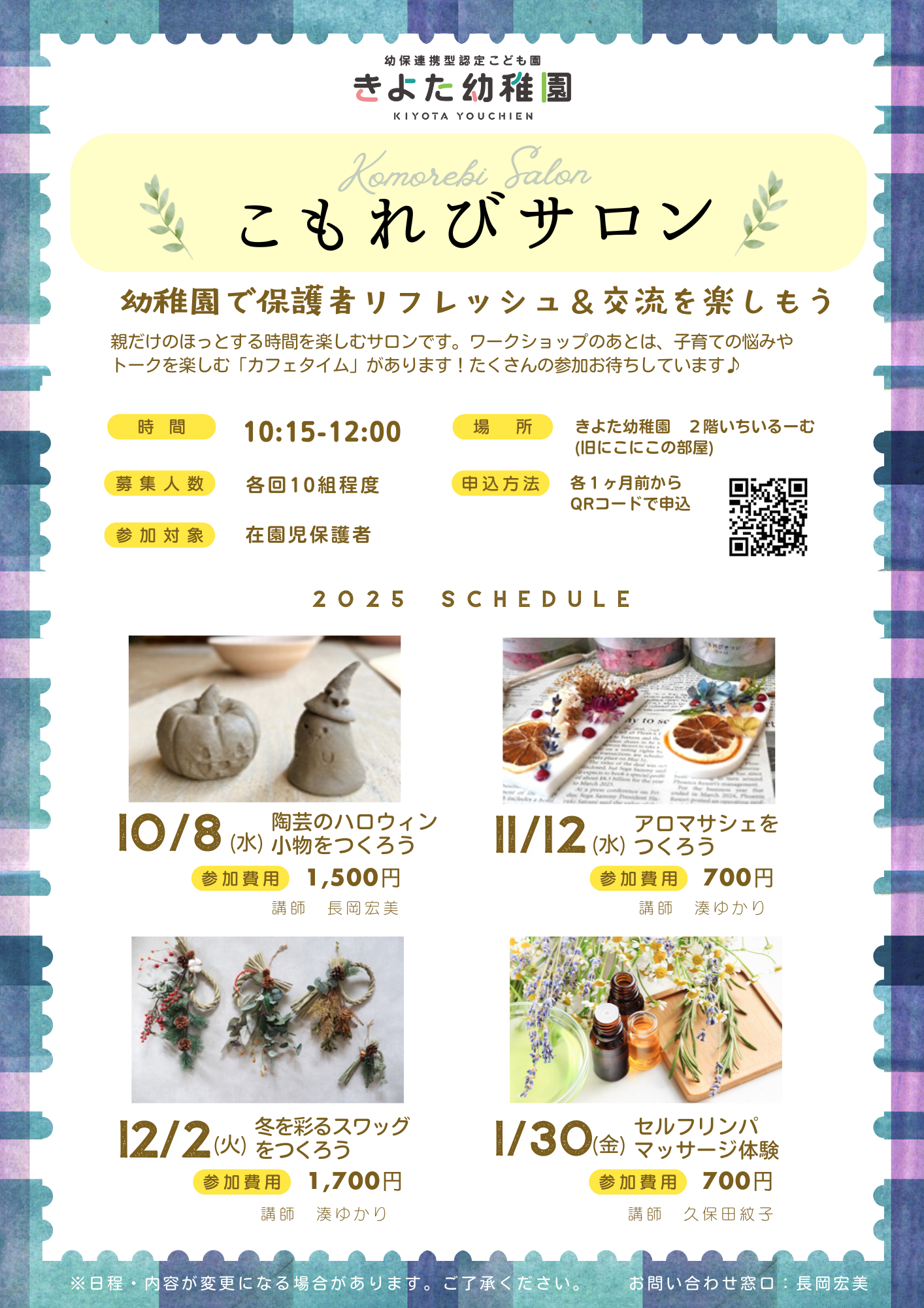 令和7年度より、1歳頃~未就園児対象〈どんぐりひろば〉に加え、0~1歳頃対象〈ひよこちゃんるーむ〉を新設します。